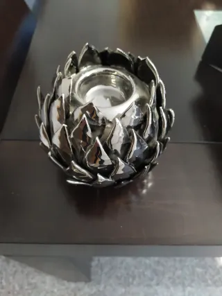 Elegante portavelas con un diseño inspirado en una flor o piña. Su acabado brillante le da un toque sofisticado a cualquier espacio. - Diseño escultural. - Base estable.