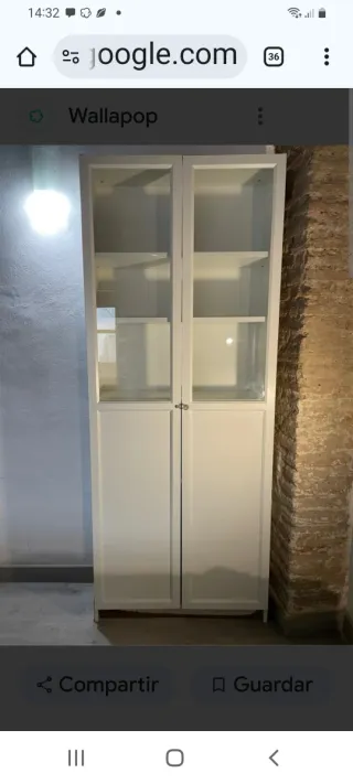 Vitrina de melamina en color blanco con puertas de cristal y madera. Está montada - Medidas: 202 cm de alto, 80 cm de ancho y 40 cm de profundidad.