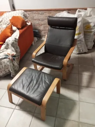 Sillón Ikea Poäng cuero y madera
