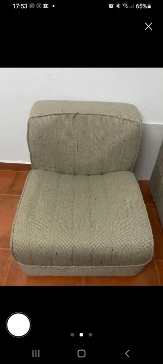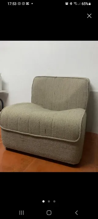 Sillón bajo tapizado beige