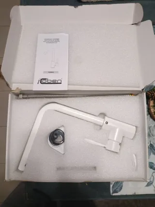 Grifo de cocina de la marca iGoben, con un diseño moderno y elegante. - Acabado en color blanco. - Fabricado en metal.