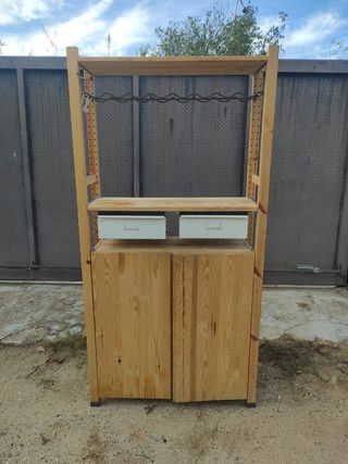 Mueble estantería de madera con botellero, dos cajones y armario con 3 estantes. ideal para cocina o comedor. medidas 1,75 x 90 x 30 recoger en Premia de Dalt. cocina comedor despensa comida armario mueble