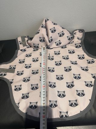 Chubasquero para perros pequeños con un divertido estampado de mapaches. Protege a tu mascota de la lluvia y el mal tiempo. - Diseño con capucha. - Cierre de velcro. - Tejido impermeable.