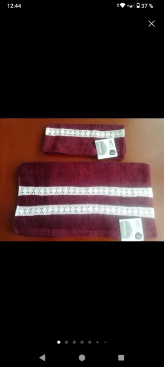 Set de dos toallas de algodón con un diseño elegante. Burdeos con entradores blancos de ganchillo hechos a mano Miden 50×100centimetros y la pequeña 30×50. - Suaves y absorbentes.