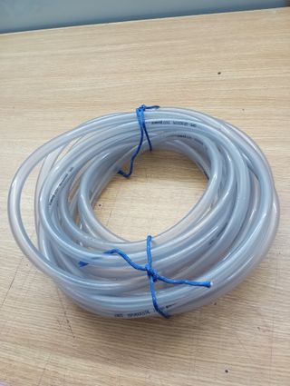 Rollo de tubo flexible transparente, ideal para diversas aplicaciones. Medidas 14,5 metros diámetro exterior 20 m/m diámetro interior 15 m/m, prácticamente nuevo, usado dos veces para vaciar agua. - Longitud: 14 metros. - Material: PVC. - Color: Transparente.