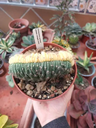 Trichocereus Pachanoi crestado con variegación aurea. Una pieza única para coleccionistas.