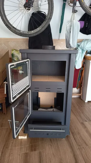 Chimenea de leña con horno, ideal para calentar y cocinar. Está nueva, a estrenar. - Puertas con cristal. - Termómetro integrado. - Cajón cenicero.
