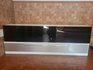 Mueble de salón madera y cristal