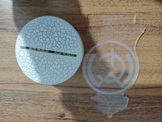 Lámpara decorativa con el escudo del Real Madrid. - Diseño grabado en acrílico. - Base con acabado texturizado. - Alimentación con cable type C. - Alimentación con pilas. (Va con una cable)