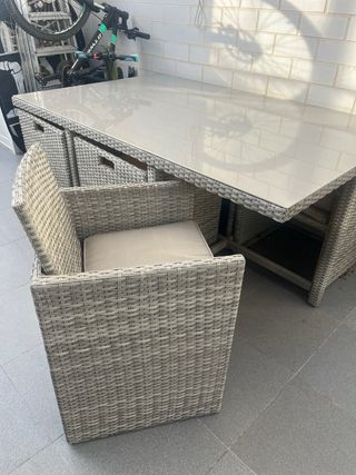 Conjunto mesa y 6 sillones terraza ratán
