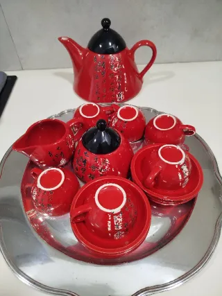 Juego de café de cerámica rojo y negro
