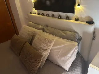 Se vende conjunto de muebles para habitación de matrimonio. - Mesita de noche con 1 cajón (x2). - Cómoda con 3 cajones. - Cabezal blanco. - Cama con arcón.