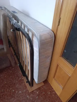 Se vende somier con colchón. - Estructura de metal y madera. - Colchón con funda de tela.