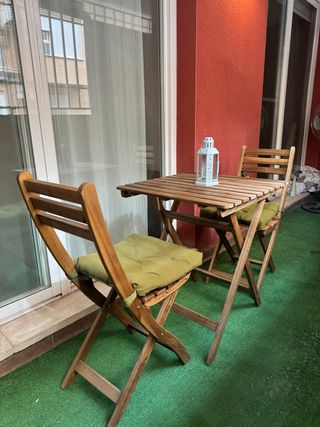 Mesa y 2 Sillas Plegables Madera