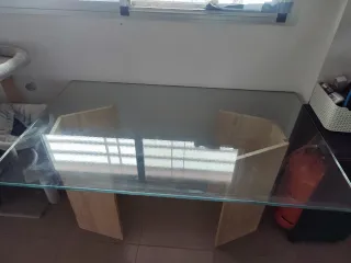 Elegante mesa con superficie de cristal templado y base de marmol - Cristal templado resistente.(Ya solo el cristal es caro) - Diseño moderno y funcional.100 euros negociables escucho ofertas 140