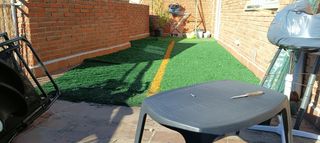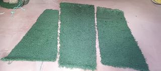Se vende césped artificial, es césped de campos de fútbol. Está cortado en tres trozos, cada uno de los trozos tiene las siguientes medidas: 5,60 x 1,90 = 10'60 m2 2,20 x 1,50 = 3,30 m2 1,60 x 1,70 = 2,70 m2 En total son 16,60 m2 y se venden todo junto o por trozos.