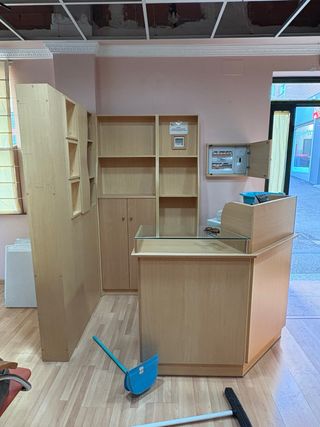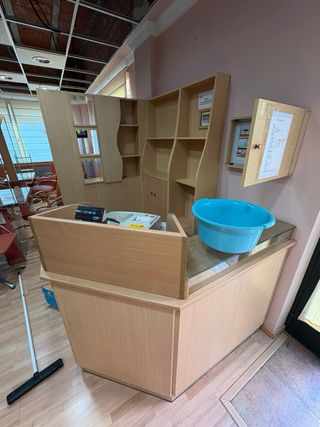 Recibidor de madera y cristal para negocio