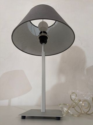 Lámpara de mesa gris y plateada