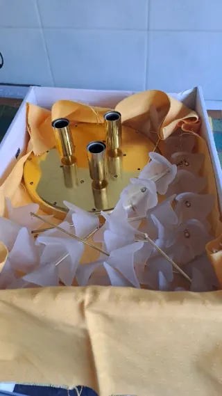Plafón de techo dorado con tulipas de cristal