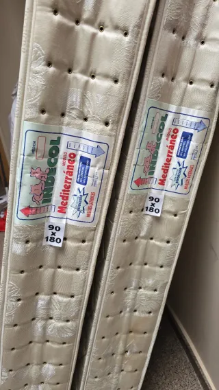 Se venden dos colchones de la marca INDECOL, modelo Mediterráneo. Precio por unidad. Hago packs si queréis más cosas de mi perfil. - Medidas: 90 x 180 cm. - Tejido de alta calidad. - Diseño reversible verano/invierno.