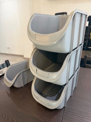 Conjunto de tres cajones organizadores apilables. Son ideales para mantener el orden en cualquier espacio. - Diseño abierto para fácil acceso. - Se apilan uno sobre otro para ahorrar espacio.