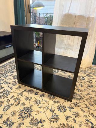 Estantería modular de cuatro cubos, perfecta para organizar tus espacios. - Diseño moderno y funcional. - Acabado en color negro.