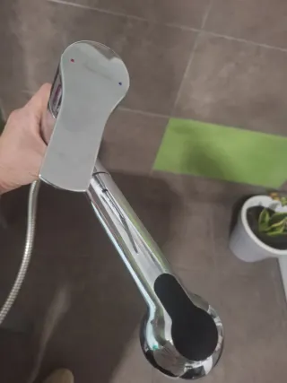 Grifo de fregadero con manguera extensible. - Acabado plateado brillante. - Fabricado en metal y plástico.