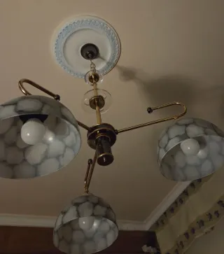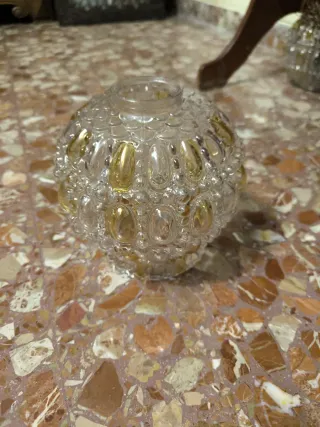 Lámpara colgante con un diseño elegante y moderno. La vendo por Reforma ... Para cualquier lugar de la casa ... - Cúpula de cristal estriado. - Base y detalles metálicos en acabado dorado.