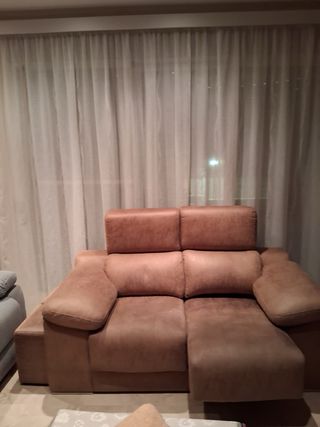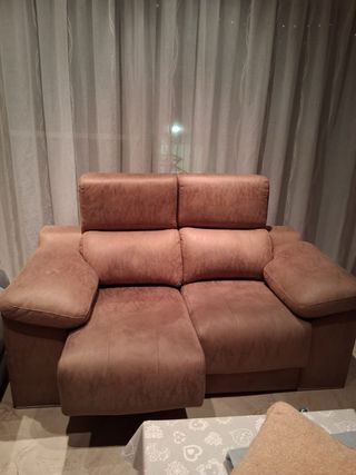 Sofá de dos plazas en un tono marrón cálido. Se puede abrir y estirar las piernas como se aprecia en la foto - Tapicería de tela. - Diseño moderno y confortable.