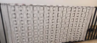 Preciosa colcha de encaje con un diseño intrincado y delicado. Añade un toque de elegancia a cualquier habitación. - Elaborada con finos hilos. - Patrones florales y geométricos. - Borde festoneado.