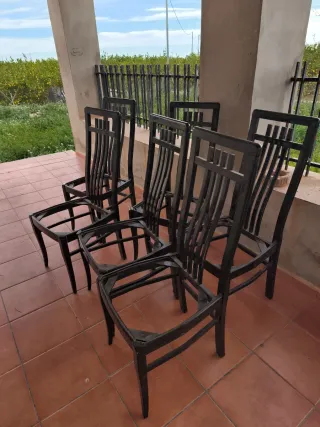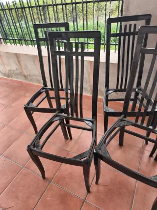 Set de seis estructuras de sillas listas para restaurar o personalizar. - Diseño elegante con respaldo alto. - Patas robustas para mayor estabilidad. - Ideales para proyectos de bricolaje y decoración.