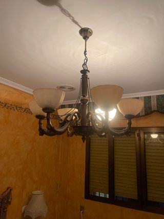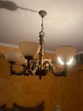 Elegante lámpara de techo colgante con un diseño clásico. Aporta un toque de distinción a cualquier estancia. - Acabado en tonos dorados y beige. - Fabricada con materiales de calidad.