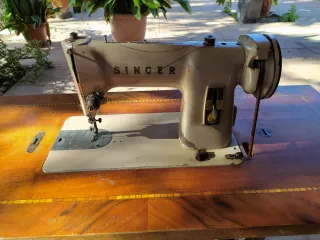 Máquina de coser Singer clásica, con un diseño retro y elegante funcional. - Cuerpo principal en color beige. - Base de madera con detalles decorativos. - Mecanismo de costura visible. - las medidas son aproximadas.