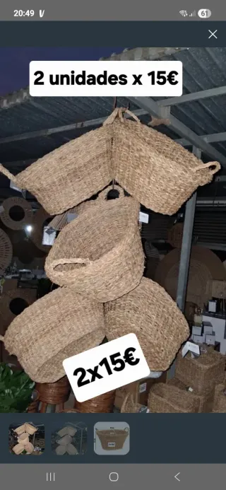 1 juego de cestas marros asa redonda 3x10__________10€ 2 cestos 6_____________12€ Cesta ropa sucia ________10€