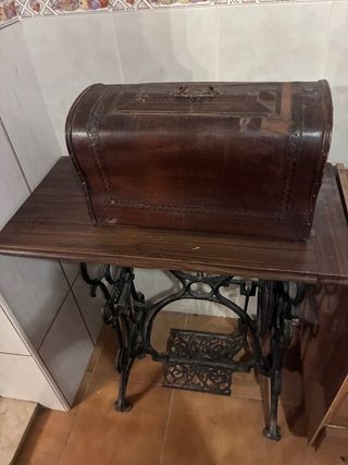 Máquina de coser antigua de la marca Singer, con una base de madera y estructura metálica. - Diseño clásico. - Ideal para coleccionistas o como pieza decorativa. (NO HAGO ENVÍOS)