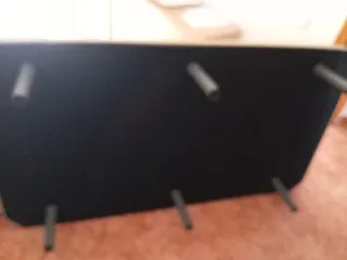 Mueble de TV Fjallbo de Ikea con un diseño industrial. - Estructura de metal y madera. - Acabado en negro y marrón. La madera superior está rota en una esquina y le faltan algunas piezas de ajuste en las patas (ver última foto), pero se queda totalmente estable aunque alguna de las patas no tenga esa pieza.