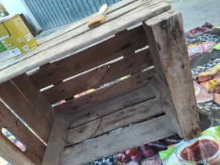 Cajón de madera con un estilo rústico y vintage, perfecto para decoración o almacenamiento. - Madera envejecida con carácter. - Diseño abierto y espacioso. - Ideal para crear un ambiente acogedor.