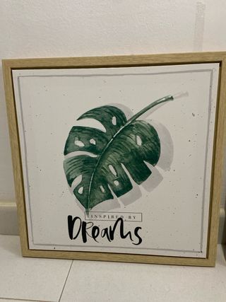 Set de dos cuadros decorativos con motivos de hojas. Cada cuadro mide 40x40cm. - Diseño de hoja de Monstera. - Ilustración de perejil. - Marco de madera.
