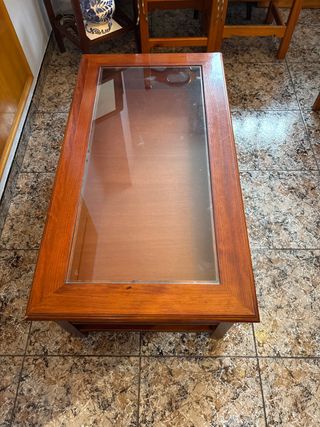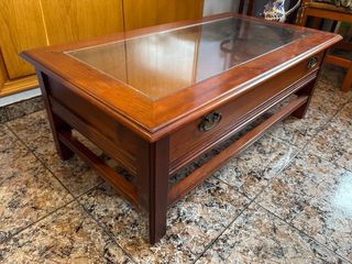 Elegante mesa de centro con madera de calidad. - Encimera de cristal. - Estructura de madera. - Con Cajón