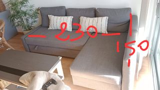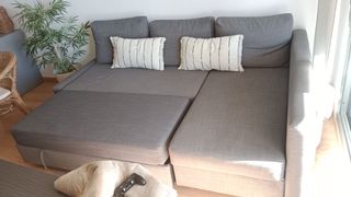 Canapé de 1,50 metros de ancho, con un acabado en tela. - Medida: 1,50 m. - Revestimiento de tela. - Se ha soltado el tornillo de una de las bisagras, ideal para un manitas que sepa montarlo de nuevo. - Super rebajado porque se vende con las bisagras pero sin montar. - Corre a cuenta del comprador el desmontaje y traslado.