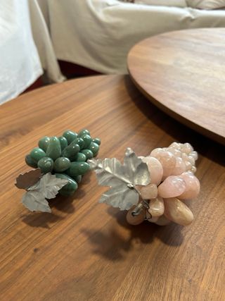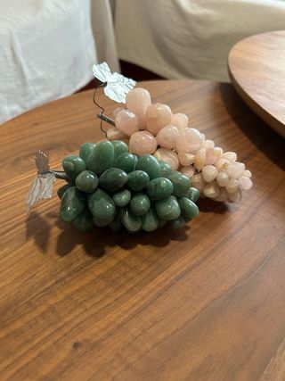 Bonito racimo decorativo de uvas. - Uvas de piedra en tonos verdes y rosados. - Tallo y hojas de metal.