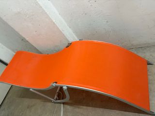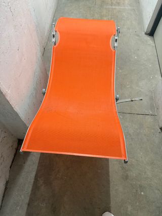 Tumbona de playa con estructura metálica y asiento de tela. - Diseño ergonómico. - Fácil de plegar y transportar.