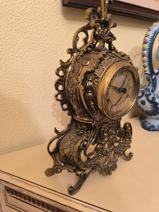 Reloj de mesa, color bronce en buen estado y conservado.