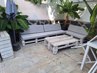 Vendo asientos bancos de palets tipo chillou vendo tres bancos más mesa de pallets y mesa para tv con cojines o sin cojines