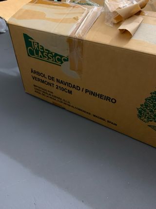 Árbol de Navidad artificial con ramas verdes y base metálica. - Materiales: Plástico y metal. - Color: Verde y marrón. -altuna 210cm