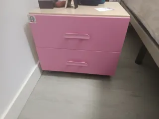 Armario beige con cajones rosas