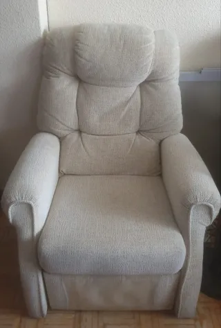 Vendo lote completo de muebles de salón por cambio de decoración. Los muebles son robustos y funcionales, ideales para uso diario. Incluye: • Mesa de Comedor: Superficie amplia y bien conservada. Incluye las 6 sillas a juego, todas estables y con el tapizado en buen estado. • Mesa de Centro: Modelo con cristal superior. Nota: Tiene una de las puertecitas inferiores despegada (se puede arreglar fácilmente o dejar así, ya que no afecta a la estabilidad ni a la estética frontal). Estado: General muy bueno, salvo el detalle mencionado en la mesa pequeña