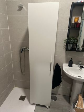Mueble de almacenaje para baño, con un diseño estrecho y moderno. - Color blanco. Tiene un par de desperfectos del uso pero por lo demas esta en muy buen estado.