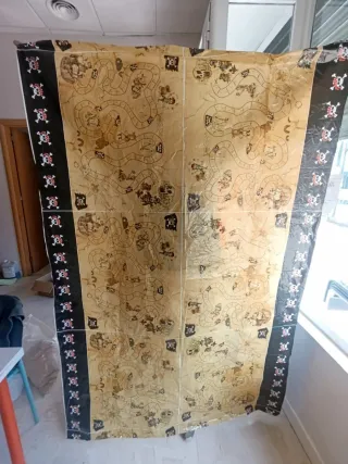 Set de accesorios para fiestas temáticas de piratas, ideal para cumpleaños. RECOGER TAMBIÉN EN SEVILLA - 2 gafas de sol temáticas - 2 parches para ojos - Bolsa con monedas doradas. - 2 guirnaldas - 2 catalejos de juguete - Mantel con mapa del tesoro (tiene un pequeño agujero en el borde, que no se aprecia mucho