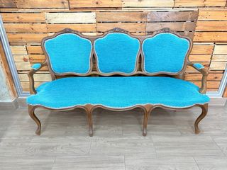 Sofá antiguo restaurado tapizado azul